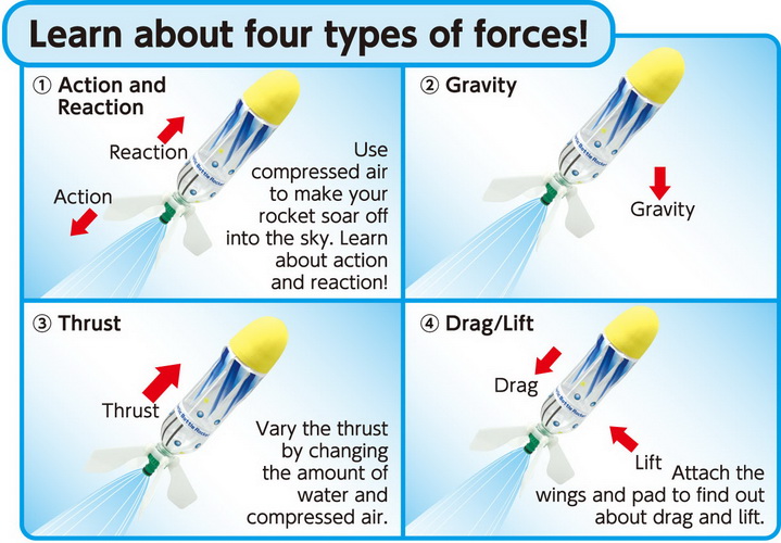 • เรียนรู้เกี่ยวกับแรง, การเคลื่อนที่, ความดันอากาศและหลักการของจรวดน้ำ