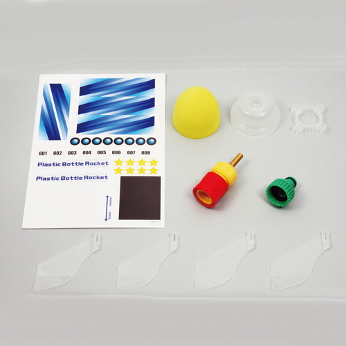 จรวดนํ้า Fly-High Rocket เพื่อทดลองและเรียนรู้เกี่ยวกับแรง, การเคลื่อนที่, ความดันอากาศและหลักการของ  จรวดน้ำ  เพื่อนำความรู้ไปประยุกต์ใช้ในการอธิบายหลักการของเครื่องบิน ประกอบด้วยอุปกรณ์สำหรับประกอบและตกแต่งจรวดน้ำด้วยตนเอง