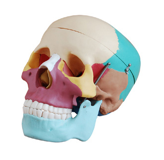 กะโหลกศีรษะแบบมีสี ขนาดเท่าของจริง กระดูกแต่ละส่วนแสดงด้วยสีแตกต่างกันสามารถถอดประกอบได้ 3 ชิ้น ขนาดโดยประมาณ 160 x 130 x 200 มม.