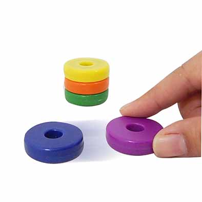 แม่เหล็กวงแหวน ประกอบด้วยแม่เหล็กสีสันต่าง ๆ ขนาดเส้นผ่านศูนย์กลาง 30 มิลลิเมตร จำนวน 5 ชิ้น ใช้เรียนรู้คูณสมบัติของแม่เหล็กและแรงดูด-แรงผลักของขั้วแม่เหล็ก ด้วยสีสันสดใสทำให้การเรียนรู้สนุกสนานและน่าสนใจ ตัวอย่างกิจกรรม เช่น แม่เหล็กลอยได้, จำแนกประเภทสิ่งของด้วยแม่เหล็ก พัฒนาทักษะการสังเกต การวิเคราะห์และการจำแนกแยกแยะ ซึ่งเป็นพื้นฐานในการเรียนวิทยาศาสตร์ขั้นต่อไป