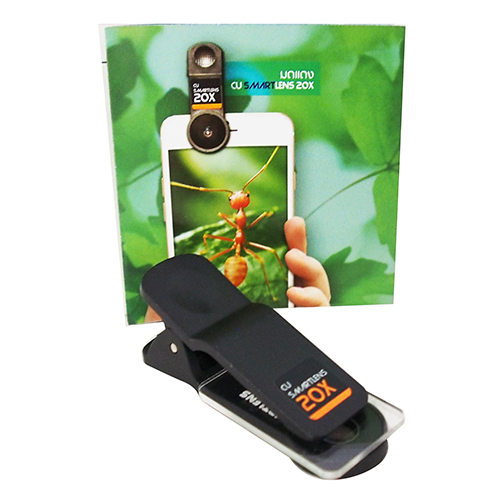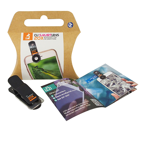 - ใช้งานร่วมกับสมาร์ทโฟนหรือแท็บเล็ต โดยหนีบ Smartlens เข้ากับกล้องของมือถือ