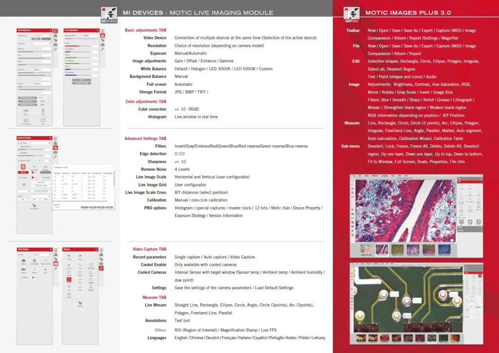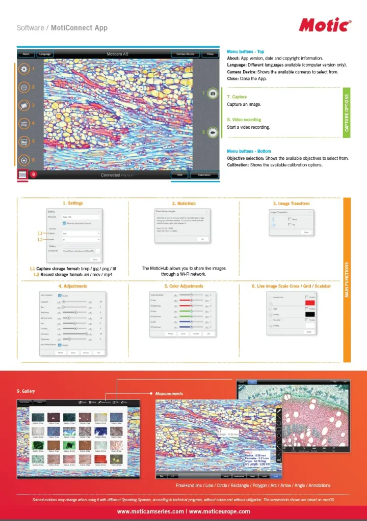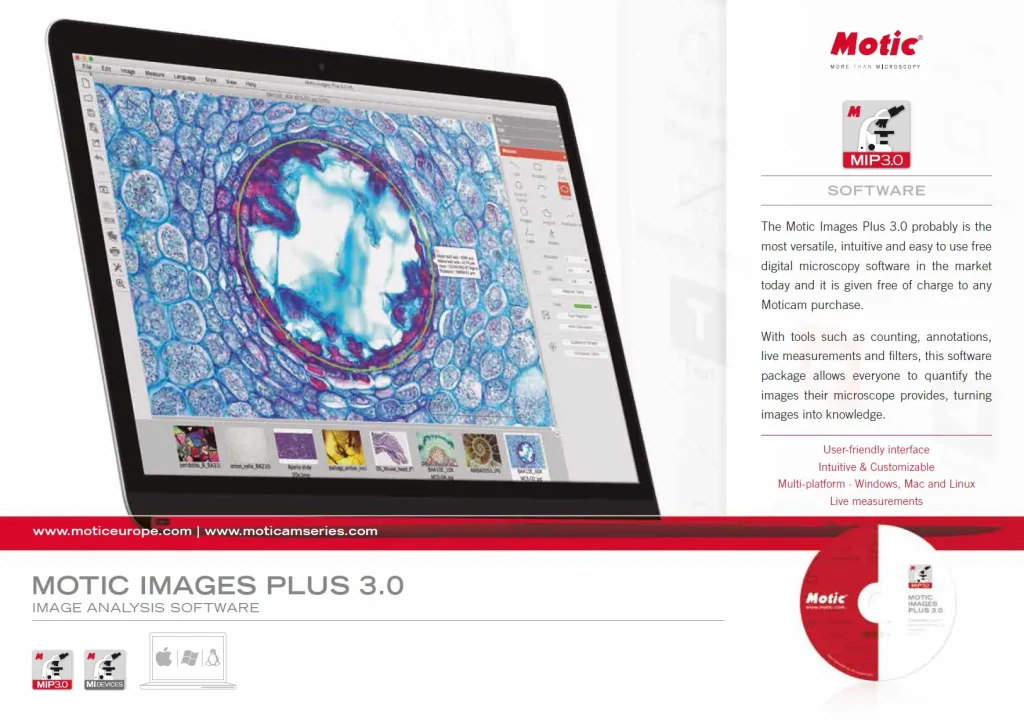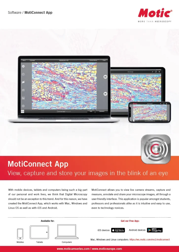 Software: MotiConnect for Android/iOS/Windows/Mac OS และ Motic Images Plus 3.1 Windows/Mac OS