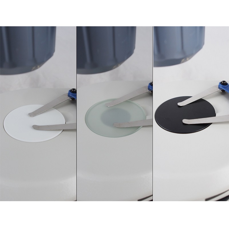 แท่นวางตัวอย่าง: แท่นวางตัวอย่าง: มีแผ่นรองวัตถุสีขาว/ดำ และแบบโปร่งแสง ที่มีเส้นผ่าศูนย์กลาง 60 มม. มีคลิปหนีบแบบ One-Touch Stage Clip