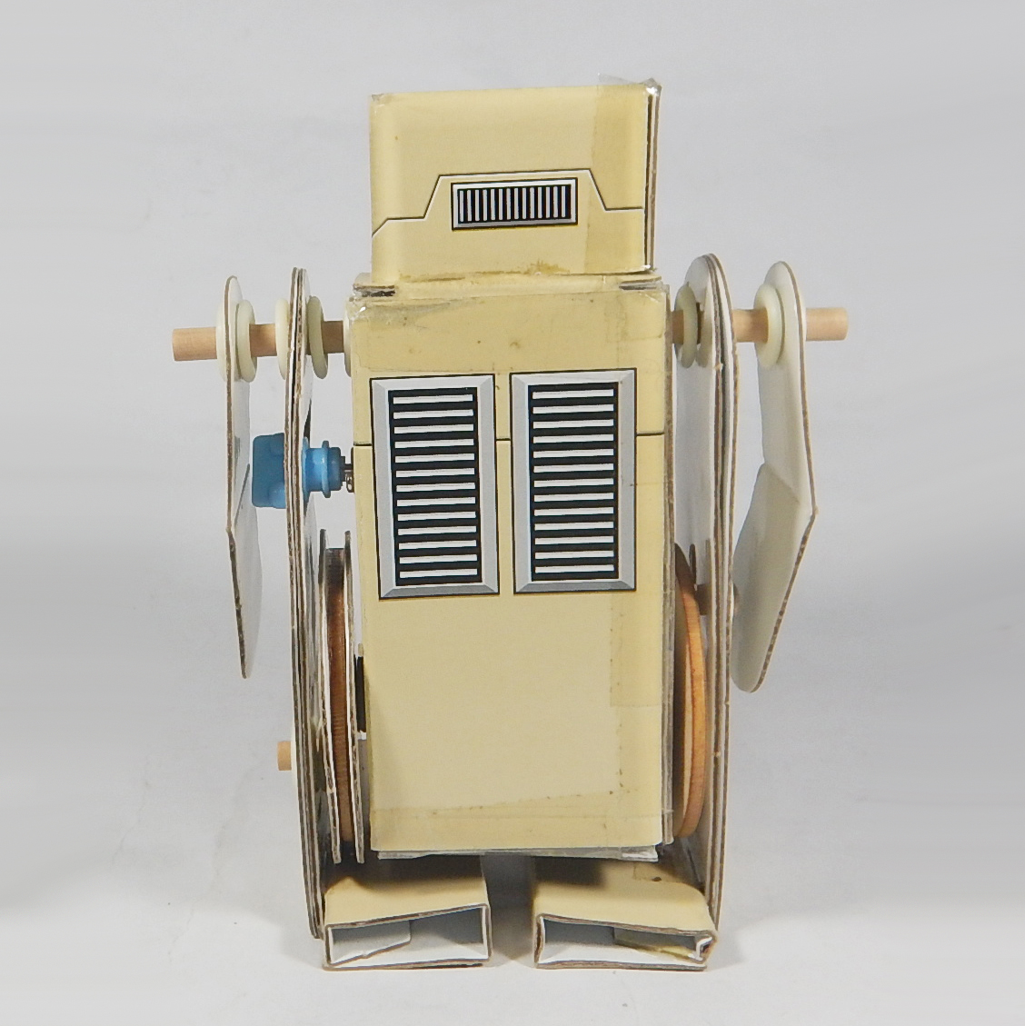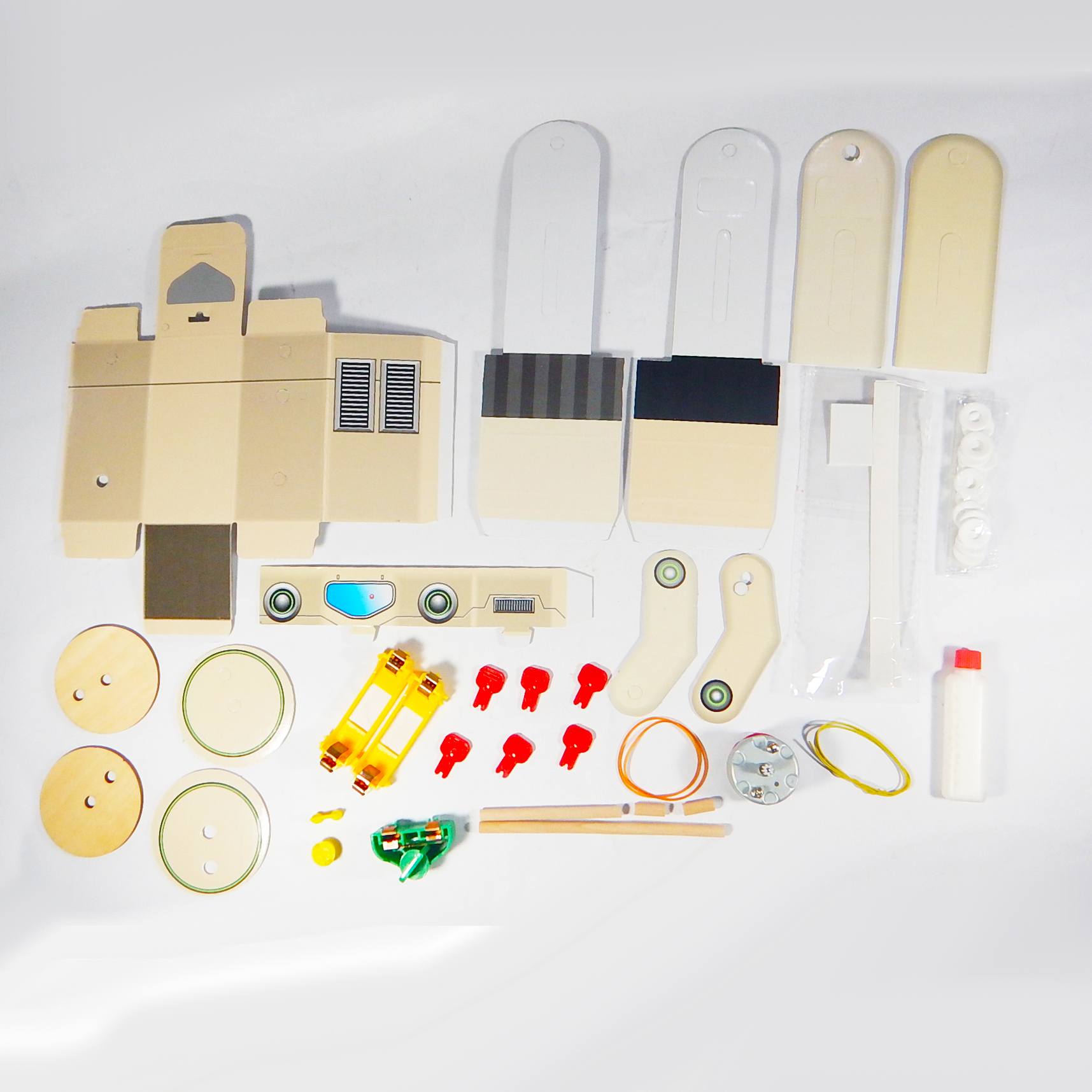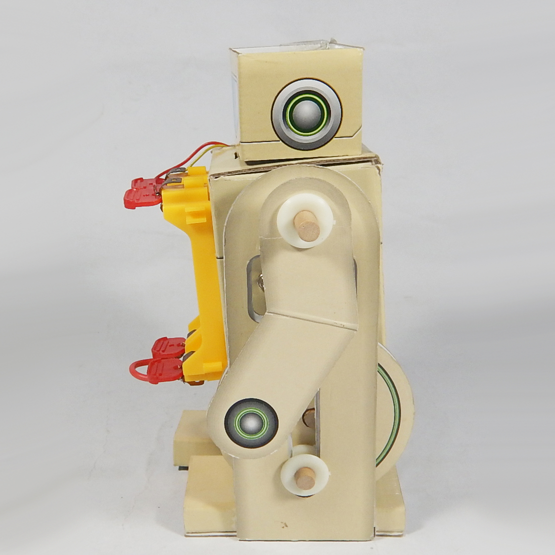 หุ่นยนต์เดินไปมาระบบมอเตอร์ หุ่นยนต์ที่อาศัยหลักการของมอเตอร์ไฟฟ้าและรอกในการเคลื่อนที่ สามารถประกอบหุ่นยนต์ด้วยตนเอง แล้วนำไปทดลองให้หุ่นยนต์เดินโดยใช้พลังงานจากแบตเตอรี่หรือถ่านไฟฉาย เรียนรู้เกี่ยวกับพลังงานไฟฟ้า, การเปลี่ยนรูปพลังงานไฟฟ้าเป็นพลังงานกล, ระบบและกลไกการเคลื่อนที่ เป็นต้น สามารถนำไปเป็นต้นแบบเสริมจินตนาการในการสร้างหุ่นยนต์ในอนาคต